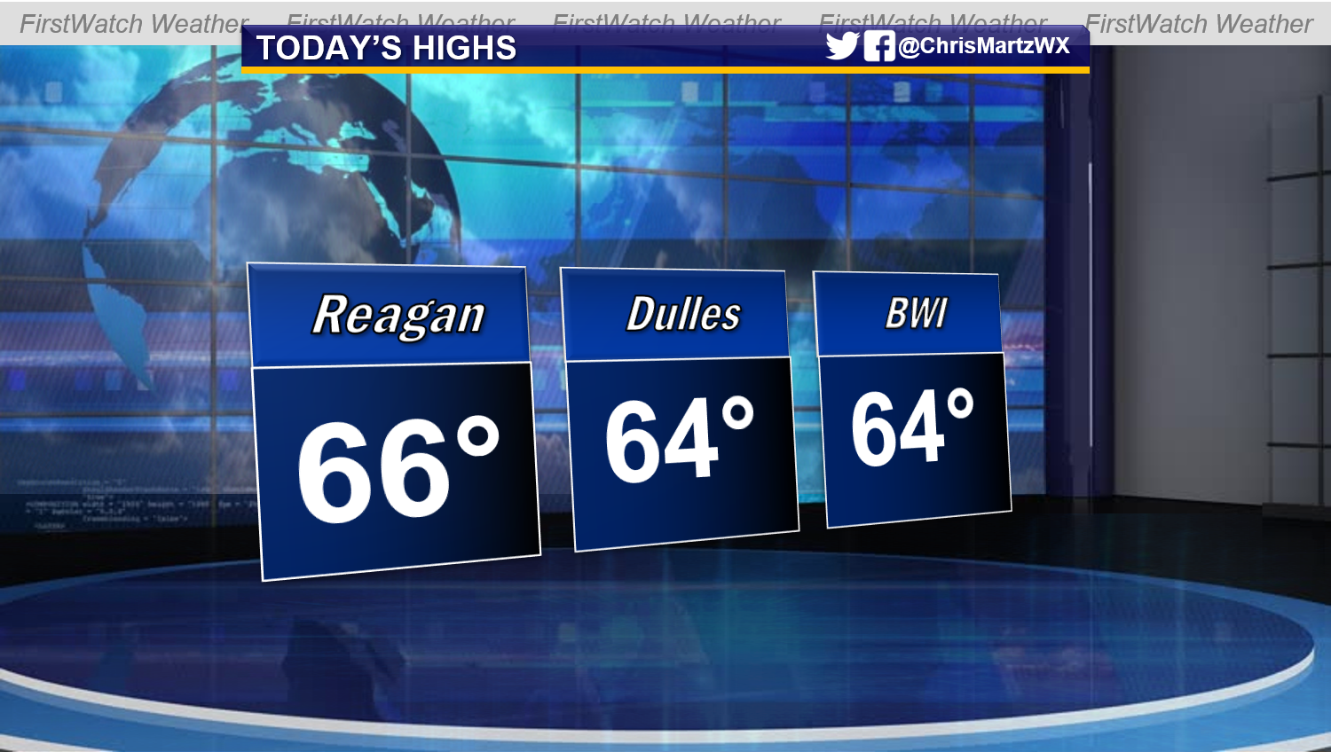 It was also a very nice day today across the Mid-Atlantic and southeastern states. Highs at all three airports were into the mid 60s today.
