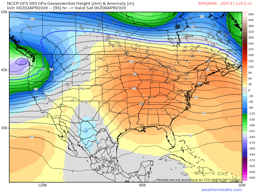 Temperatures will start to warm-up late week as an area of high pressure develops to the south, which will open the door to a southerly flow boosting temperatures into the 70s (Figure 2).