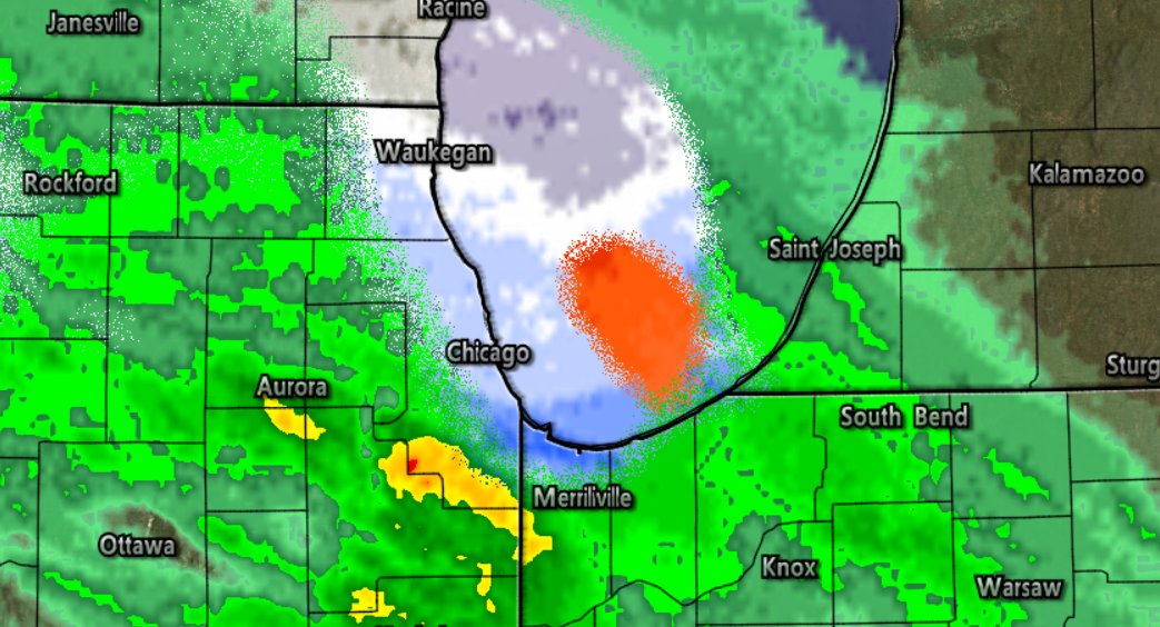 The rain has already transitioned over to snow (Figure 4) for many areas around Chicago and if rates are steady enough, they may very well pick up the same amounts shown on MOS data. The biggest roadblock which may prevent record snowfall for the area is the high April sun angle, which works against snowfall rates.