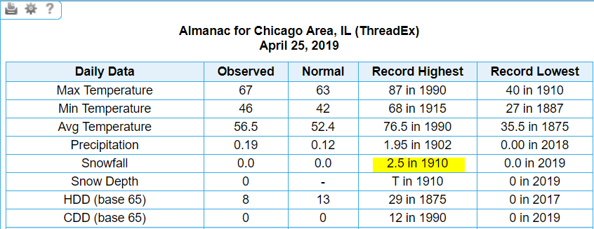 Looking back at historical records, I was able to find that Chicago’s latest 1-inch snow event occurred on May 1, 1940, when 1.6 inches of snow fell.⁵
