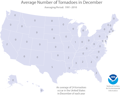 Areas that are statistically the most likely to see winter tornadoes (December-February) are the Gulf states; Florida, Alabama, Mississippi, Louisiana, and Southeastern Texas, not to mention Georgia and Arkansas (not directly on the Gulf).¹ ² ³ ⁴