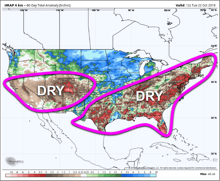 I also forecasted dry conditions to ensue over the West Coast, Desert Southwest, Deep South, and Southeast, whereas the Ohio Valley, Mid-Atlantic, and Northeast were to have above average precipitation, with much of the northern tier of the country near average, give or take.