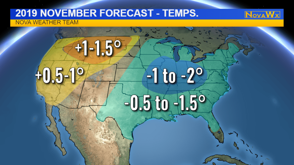Back in August, I released my autumn outlook. I predicted below average temperatures stretching from Big Sky Country all the way east to the Ohio Valley and above average temperatures across much of the Desert Southwest.