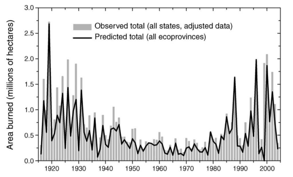 [8] Litell, Jeremy S., et al. “Climate and wildfire area burned in western U.S. ecoprovinces, 1916–2003.” 2009. Accessed October 29, 2019. https://pdfs.semanticscholar.org/4af3/67682e73d0f2a2d45592baa571bf5332bfe3.pdf