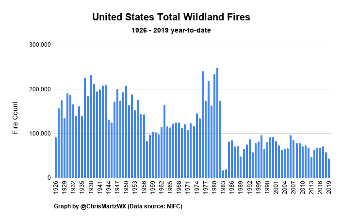 While the National Interagency Fire Center (NIFC) warns that data prior to 1983 may be too high or too low⁷, it can be safely assumed (based on peer-reviewed and non peer-reviewed studies) that the historical record is sufficient.