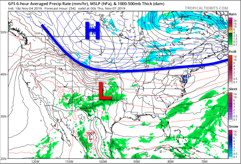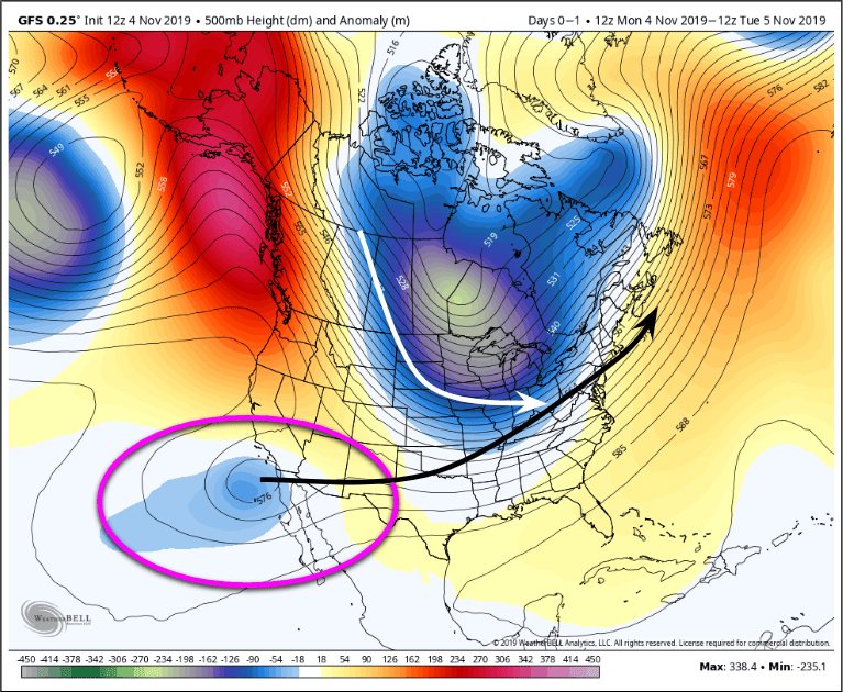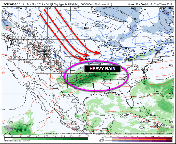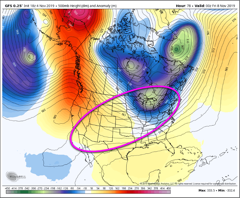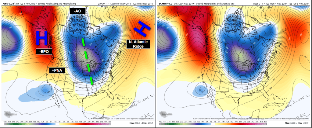 While earlier runs of the GFS and ECMWF had large discrepancy in output solutions, the two models have really come into pretty nice agreement over the course of today, November 4th. For the sake of time, I’m only going to show the European model solution.