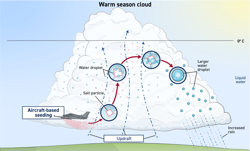 There are different types of weather modification, but the term primarily refers to the practice of cloud seeding, which involves the addition of tiny particles to clouds to alter the phase and size distribution of cloud droplets with the intention of enhancing precipitation over a localized area. In layman’s terms, the goal is to make existing clouds more efficient at producing rain or snow—not create new clouds.