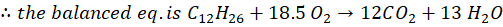 Thus, the carbon atoms produce 12 molecules of CO2 and 13 molecules of H2O. The balanced equation becomes.