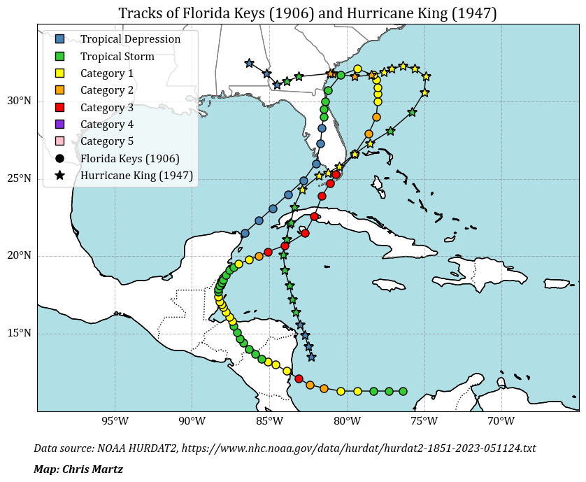 As one can imagine, the public got wind of Project Cirrus and was outraged that the scientists’ meddling had caused the hurricane to change course and strike Georgia. Lawsuits were threatened to be brought against GE. Dr. Irving Langmuir—the head of GE’s laboratories—issued a statement claiming that he was “99% sure” that the hurricane track changed due to cloud seeding, building the public’s case against GE. However, Dr. Francis Reichelderfer of the U.S. Weather Bureau (now the National Weather Service) dismissed Langmuir’s claims, noting that hurricanes can suddenly change course without seeding agents, citing the category three “Florida Keys” hurricane of 1906 as an example (Fig. 9).